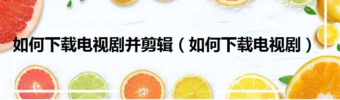 大家好,小活来为大家解答以上问题。如何下载电视剧并剪辑,如何下载电视剧很多人还不知道,现在让我们一起来看看吧!