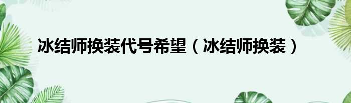 大家好,小活来为大家解答以上问题。冰结师换装代号希望,冰结师换装很多人还不知道,现在让我们一起来看看吧!