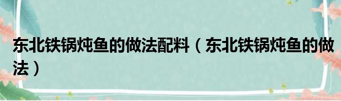 东北铁锅炖鱼的做法配料(东北铁锅炖鱼的做法)