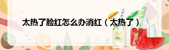 大家好,小活来为大家解答以上问题。太热了脸红怎么办消红,太热了很多人还不知道,现在让我们一起来看看吧!