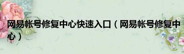 网易帐号修复中心快速入口(网易帐号修复中心)
