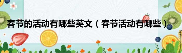 大家好,小活来为大家解答以上问题。春节的活动有哪些英文,春节活动有哪些很多人还不知道,现在让我们一起来看看吧!