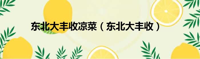 大家好,小活来为大家解答以上问题。东北大丰收凉菜,东北大丰收很多人还不知道,现在让我们一起来看看吧!