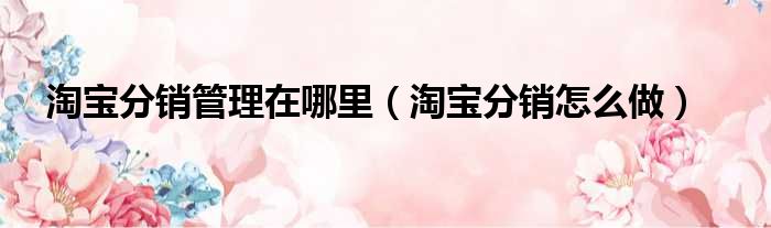 淘宝分销管理在哪里(淘宝分销怎么做)