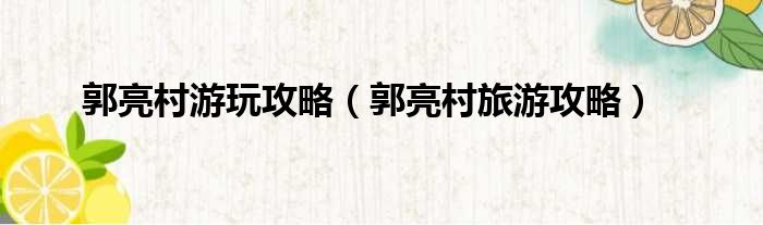 郭亮村游玩攻略(郭亮村旅游攻略)