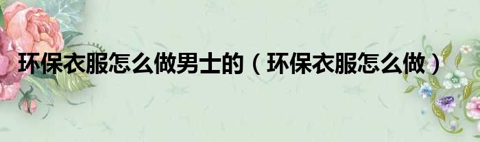 大家好,小活来为大家解答以上问题。环保衣服怎么做男士的,环保衣服怎么做很多人还不知道,现在让我们一起来看看吧!