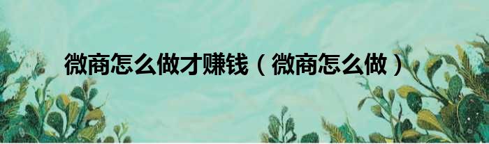 微商怎么做才赚钱(微商怎么做)