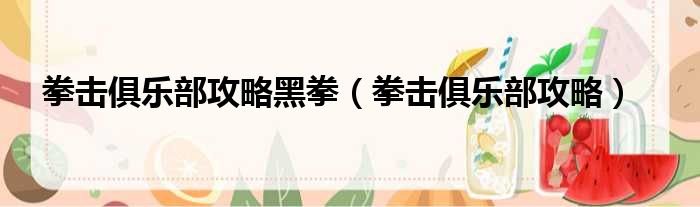拳击俱乐部攻略黑拳(拳击俱乐部攻略)