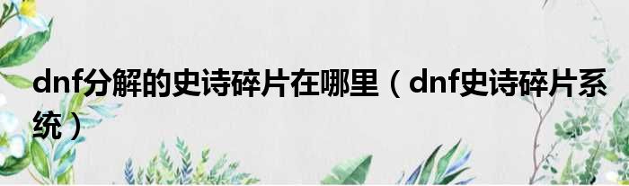dnf分解的史诗碎片在哪里(dnf史诗碎片系统)