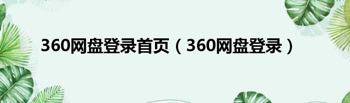 360网盘登录首页(360网盘登录)