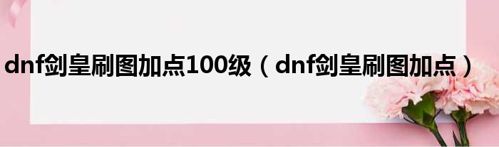 dnf剑皇刷图加点100级(dnf剑皇刷图加点)