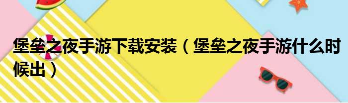 堡垒之夜手游下载安装(堡垒之夜手游什么时候出)