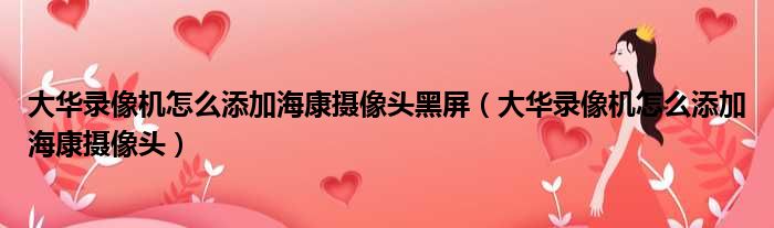 大华录像机怎么添加海康摄像头黑屏(大华录像机怎么添加海康摄像头)