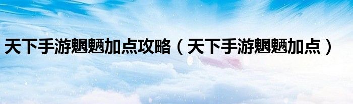 天下手游魍魉加点攻略(天下手游魍魉加点)