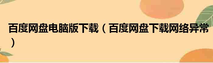 百度网盘电脑版下载(百度网盘下载网络异常)