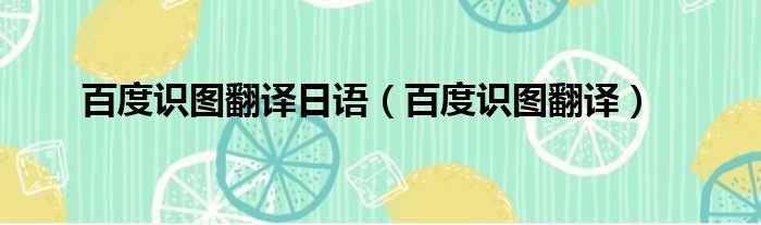 大家好,小活来为大家解答以上问题。百度识图翻译日语,百度识图翻译很多人还不知道,现在让我们一起来看看吧!