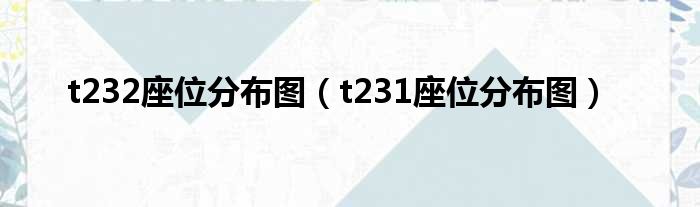 大家好,小活来为大家解答以上问题。t232座位分布图,t231座位分布图很多人还不知道,现在让我们一起来看看吧!
