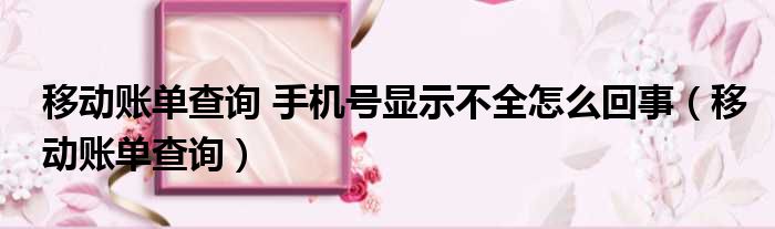 移动账单查询 手机号显示不全怎么回事(移动账单查询)