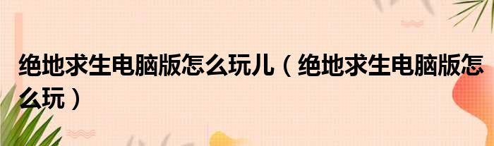 绝地求生电脑版怎么玩儿(绝地求生电脑版怎么玩)
