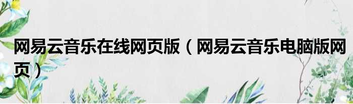 网易云音乐在线网页版(网易云音乐电脑版网页)