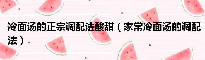 冷面汤的正宗调配法酸甜(家常冷面汤的调配法)