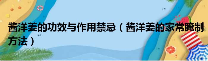 导读 大家好,小活来为大家解答以上问题。酱洋姜的功效与作用禁忌,酱洋姜的家常腌制方法很多人还不知道,现在让我们一起来看看吧!1、买姜的时