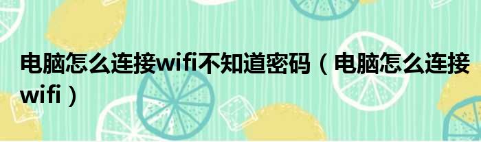 电脑怎么连接wifi不知道密码(电脑怎么连接wifi)