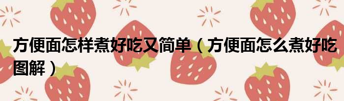 方便面怎样煮好吃又简单(方便面怎么煮好吃图解)