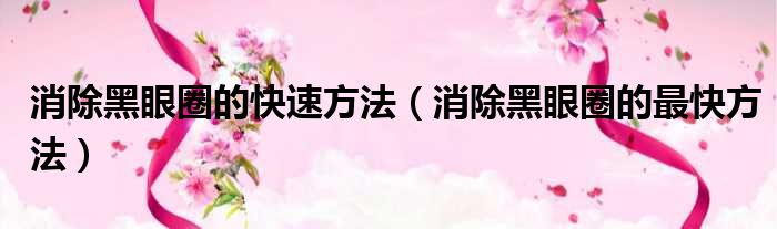 消除黑眼圈的快速方法(消除黑眼圈的最快方法)