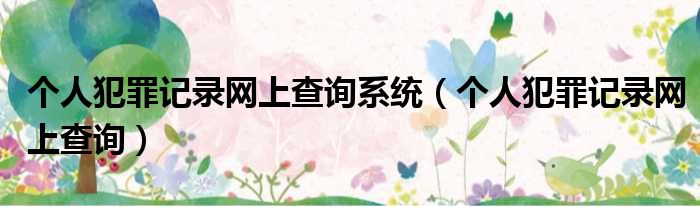 个人犯罪记录网上查询系统(个人犯罪记录网上查询)
