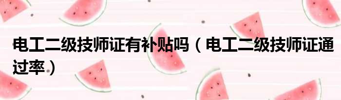 电工二级技师证有补贴吗(电工二级技师证通过率)