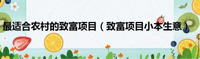大家好,小活来为大家解答以上问题。最适合农村的致富项目,致富项目小本生意很多人还不知道,现在让我们一起来看看吧!