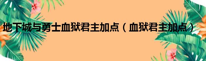 大家好,小活来为大家解答以上问题。地下城与勇士血狱君主加点,血狱君主加点很多人还不知道,现在让我们一起来看看吧!