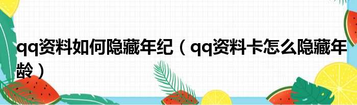 qq资料如何隐藏年纪(qq资料卡怎么隐藏年龄)