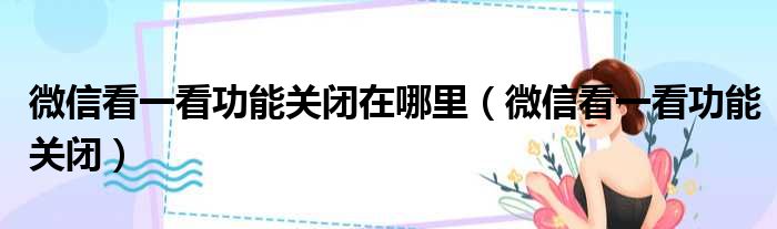 微信看一看功能关闭在哪里(微信看一看功能关闭)