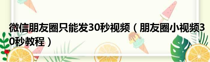 微信朋友圈只能发30秒视频(朋友圈小视频30秒教程)