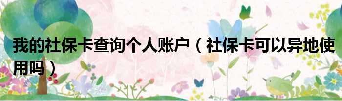 我的社保卡查询个人账户(社保卡可以异地使用吗)