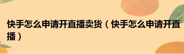 快手怎么申请开直播卖货(快手怎么申请开直播)