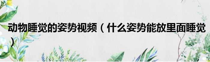 导读 大家好,小活来为大家解答以上问题。动物睡觉的姿势视频,什么姿势能放里面睡觉很多人还不知道,现在让我们一起来看看吧!1、有三种基本姿