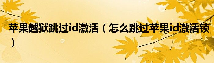 苹果越狱跳过id激活(怎么跳过苹果id激活锁)