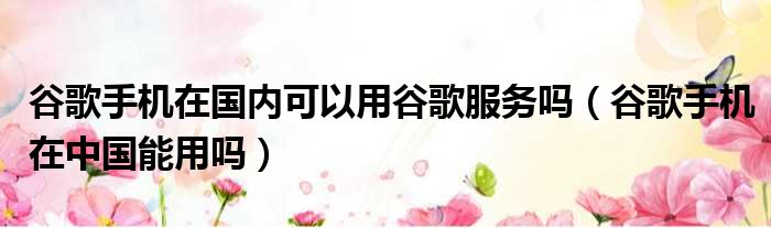 谷歌手机在国内可以用谷歌服务吗(谷歌手机在中国能用吗)