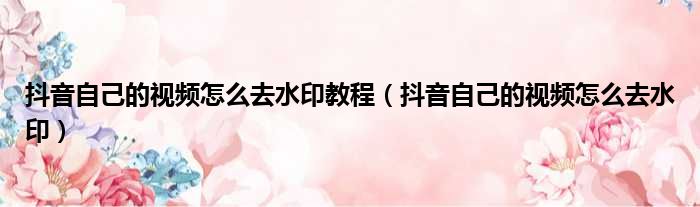 抖音自己的视频怎么去水印教程(抖音自己的视频怎么去水印)