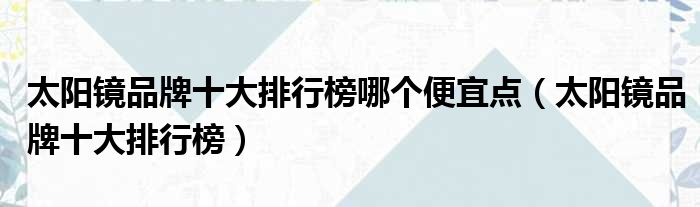 太阳镜品牌十大排行榜哪个便宜点(太阳镜品牌十大排行榜)