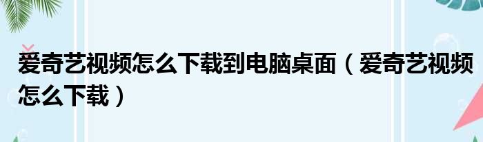 爱奇艺视频怎么下载到电脑桌面(爱奇艺视频怎么下载)