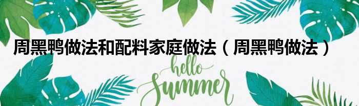 大家好,小活来为大家解答以上问题。周黑鸭做法和配料家庭做法,周黑鸭做法很多人还不知道,现在让我们一起来看看吧!