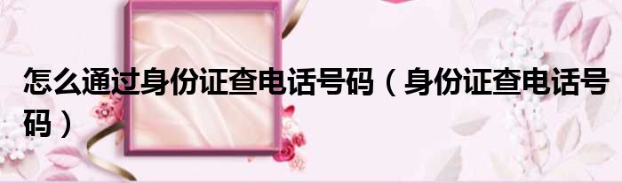 大家好,小活来为大家解答以上问题。怎么通过身份证查电话号码,身份证查电话号码很多人还不知道,现在让我们一起来看看吧!