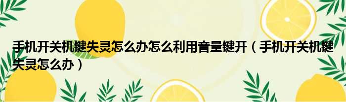 手机开关机键失灵怎么办怎么利用音量键开(手机开关机键失灵怎么办)
