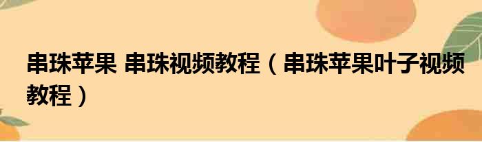 导读 大家好,小活来为大家解答以上问题。串珠苹果 串珠视频教程,串珠苹果叶子视频教程很多人还不知道,现在让我们一起来看看吧!1、:首先我们