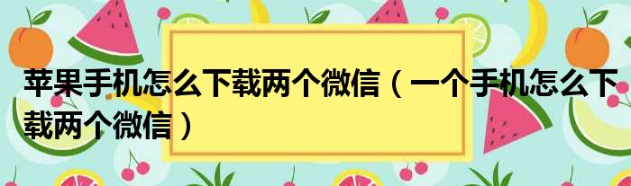 苹果手机怎么下载两个微信(一个手机怎么下载两个微信)