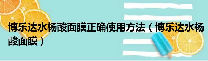 博乐达水杨酸面膜正确使用方法(博乐达水杨酸面膜)